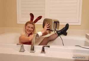 We join Zonah and the woman-of-the-estate Sandra Silvers, in a bright, pink tiled garden tub corner of the 1980s house. The walled shrubbery surrounds a jacuzzi tub, built for two to lounge in. This morning, Ms. Silvers has no relaxation in the water, as she’s been tied up, tossed on her front, and we catch up with the pair as a bare breasted, stripped down to pantyhose, Zonah turns the tap to unleash running terror in splashes and rivulets around her MILF mistress’ body! Sandra had been getting dressed for the day, only her red lacy lingerie and pantyhose had been donned, when the muscular maid of the earth Zonah Bellum crept behind her unawares. Flimsy bra, panties, and tights do nothing to protect Sandra from the rising torrent of water, especially when the petite but persistent Miss Bellum pushes Sandra’s face under the ripples, a cleave gag soaking up more liquid than Sandra can manage in her mouth! What will happen to the lady in peril?